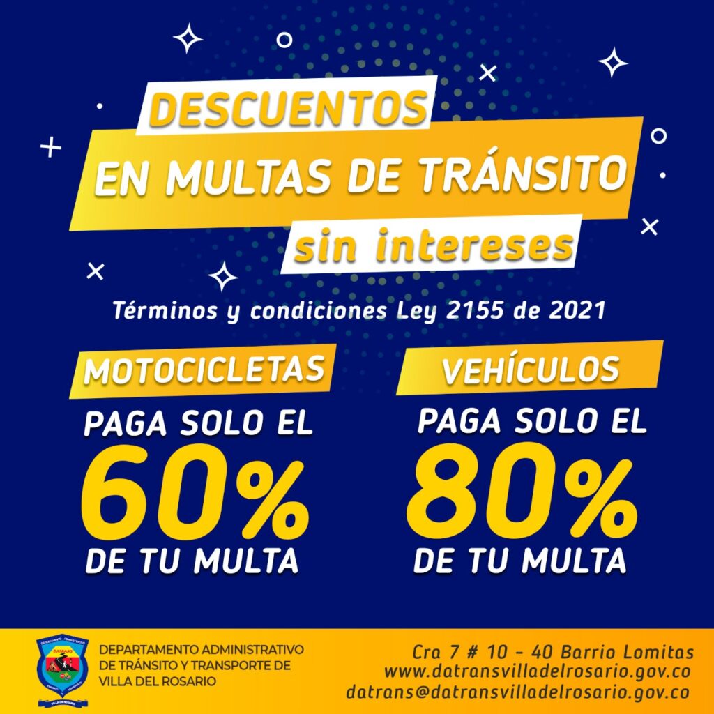 onoce los descuentos en multas de tránsito que ofrece la Ley 2155 de 2021.